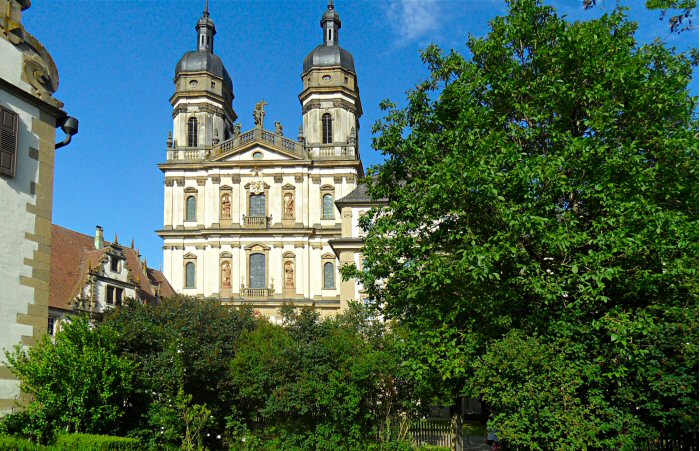 Klosterkirche stehen in Schöntal imposante Doppeltürme gegenüber, die eine
