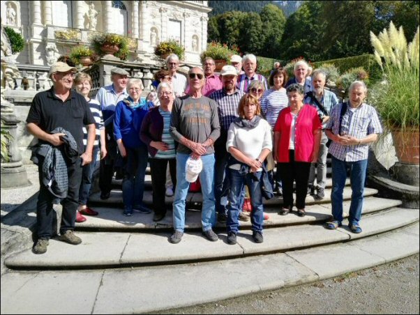 Teil der Reisegruppe vor Schloss Linderhof (Foto: Helga) |