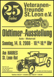 • Veteranenfahrzeuge-Ausstellung in der Spargelhalle St. Leon (war auch dank einer sehr intensiven Planung ein Riesenerfolg; sogar die Eltern der Kommunionkinder wurden per Schreiben eingeladen, und ein Lanz-Bulldog aus Reilingen tuckerte vor der Halle und machte auf uns aufmerksam!)